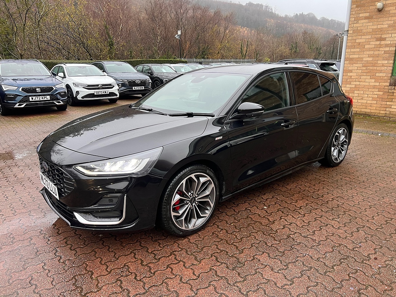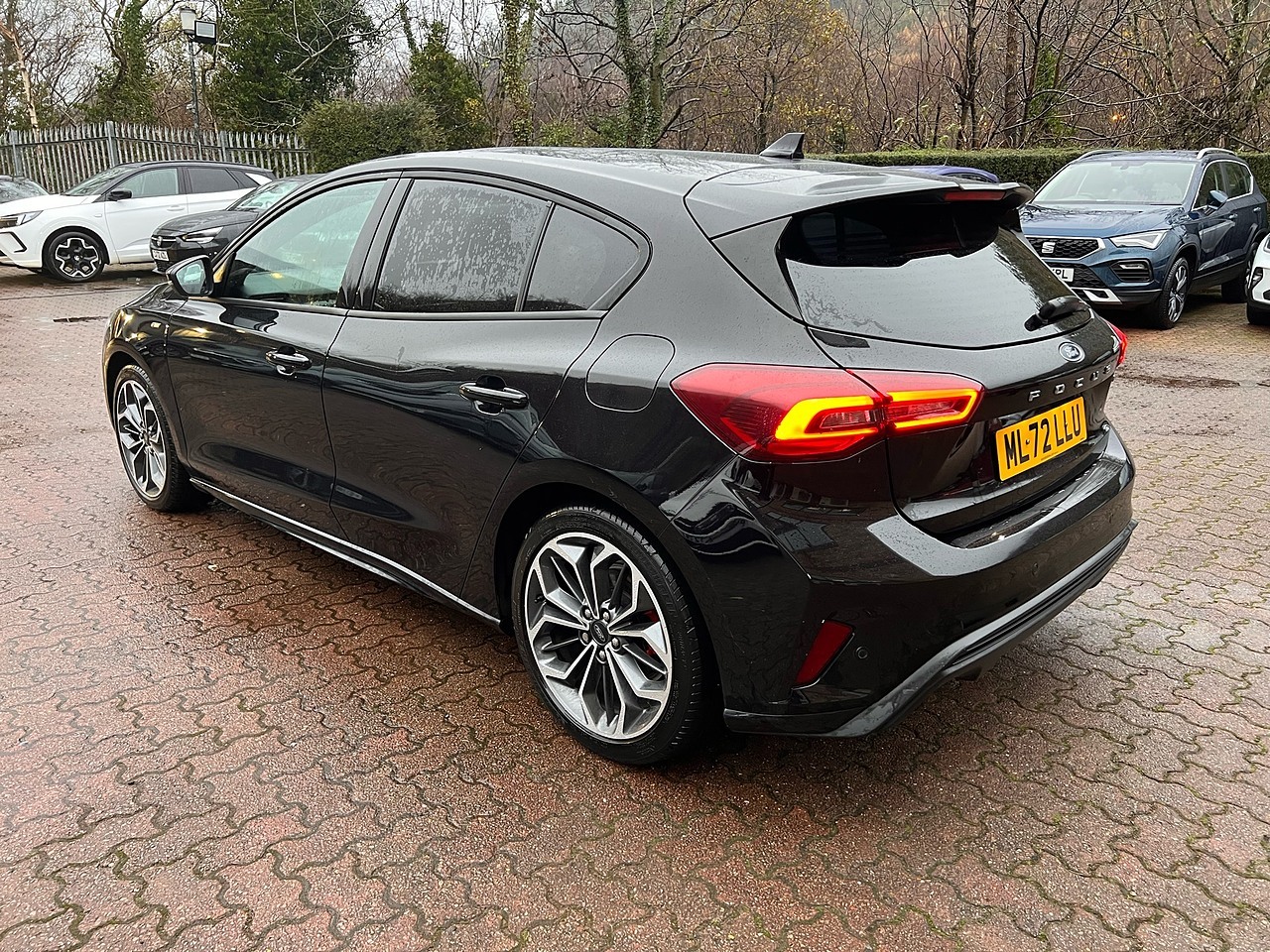 Inside, you'll find a host of premium features designed for comfort and convenience. The Ford SYNC 4 navigation system, complete with a large 13.2 inch touchscreen, seamlessly integrates Android Auto and Apple CarPlay, all powered by a premium branded sound system. Stay connected and charged with wireless phone charging, while the DEATC dual zone electronic automatic temperature control ensures everyone enjoys their ideal climate. Parking is made effortless with front and rear parking sensors, and the full fixed LED headlights with LED daytime running lights offer excellent visibility. These features collectively enhance the driving experience, setting this Focus apart from others.