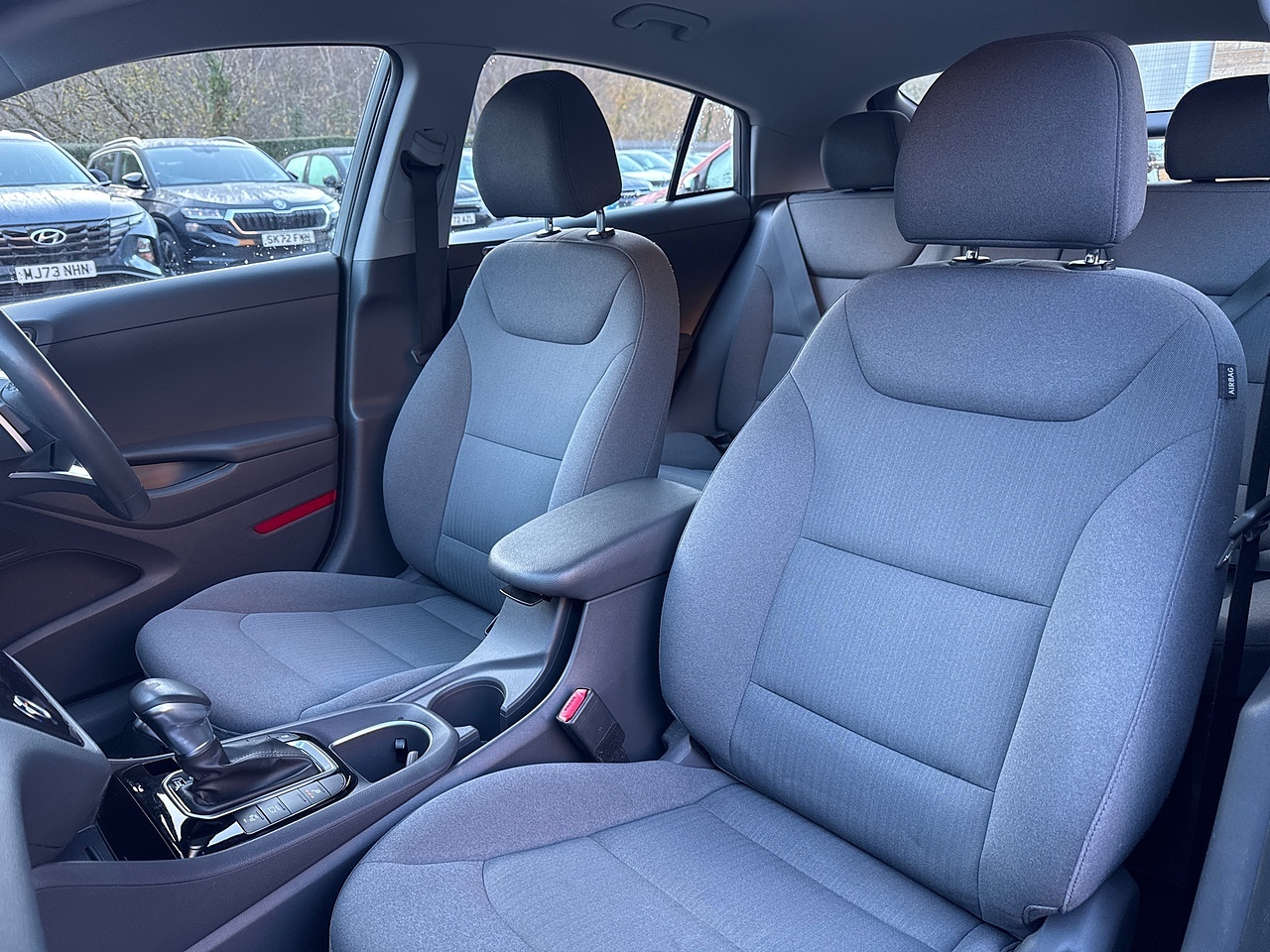This 2022 Hyundai IONIQ h GDi Premium has had only one owner since new, offering excellent provenance. This Euro 6 compliant model features a 1.6 litre petrol hybrid engine and comes with an MOT valid until October 2026. Inside, you'll find dual zone climate control for personalised comfort, and seamless connectivity with Apple CarPlay and Bluetooth. The smart key allows for keyless entry and engine start stop, while the rear camera and guidance system makes parking straightforward.