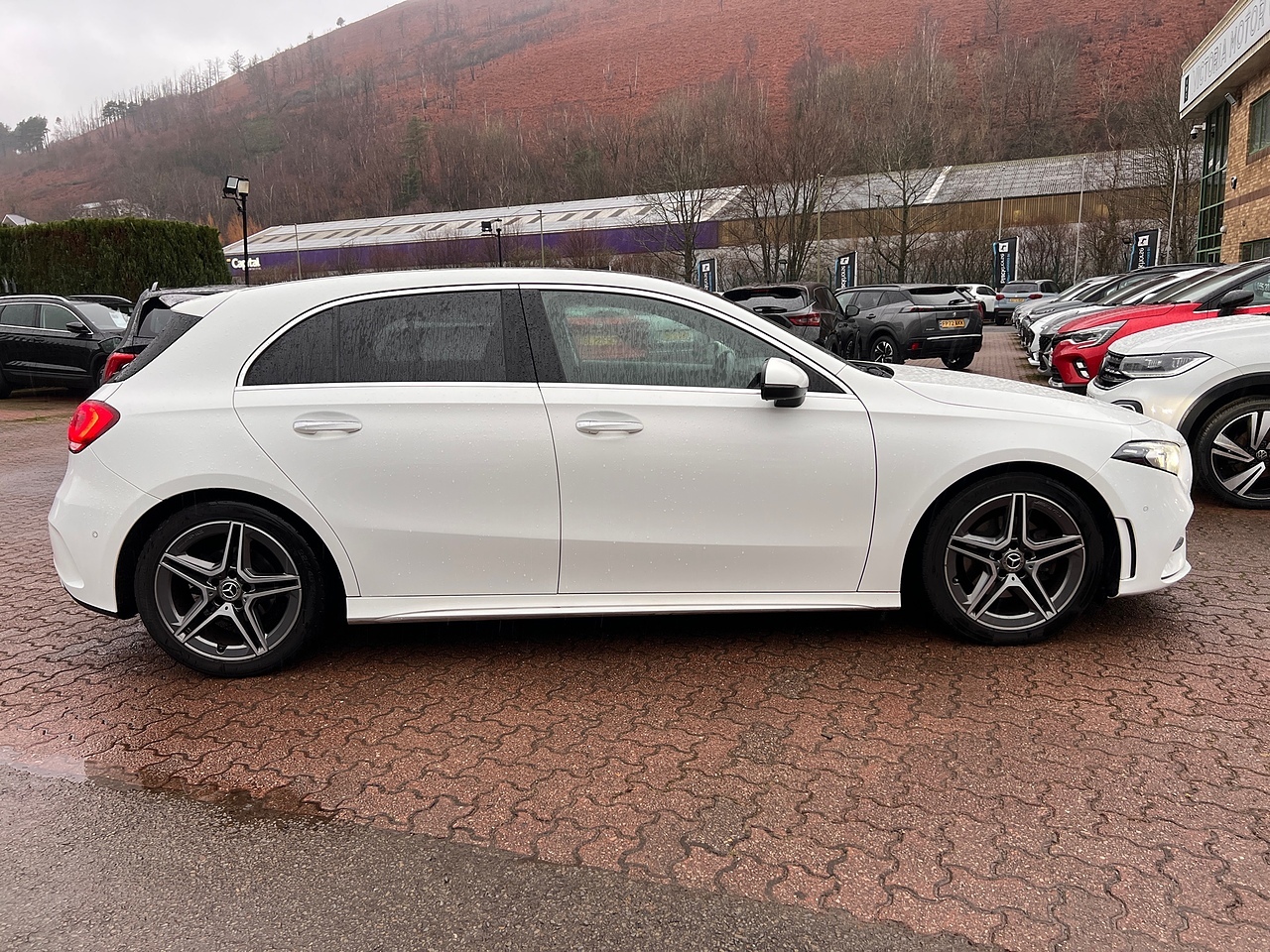 This 2019 Mercedes Benz A Class A180 AMG Line (Premium Plus) boasts exceptionally low mileage for its age, having covered just 37,300 miles. The AMG Line trim enhances its sporty appeal, while the Premium Plus Package adds a wealth of desirable features. These include advanced LED headlights, keyless entry for effortless access, and an opening panoramic sunroof that floods the cabin with light. For convenience, you'll find heated front seats with memory function, a multi-function leather steering wheel with a flattened bottom, and body coloured door handles with a chrome accent.