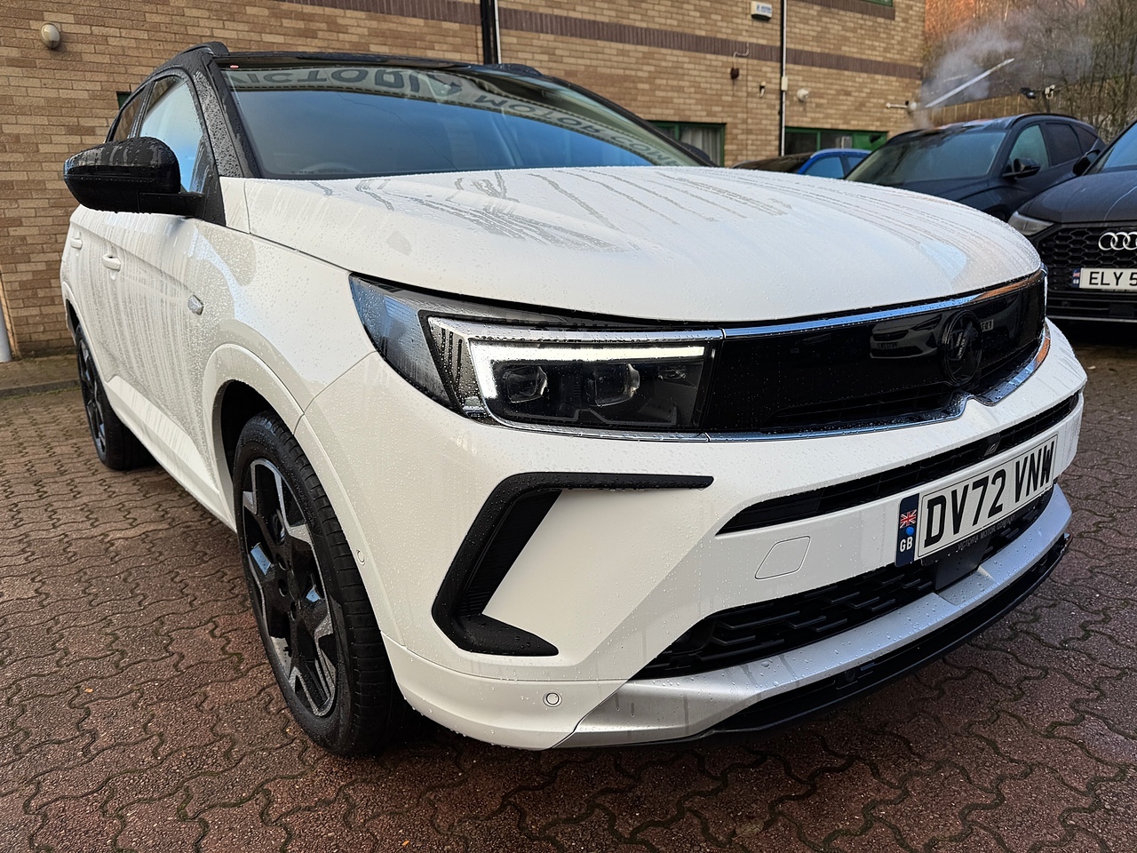 This 2022 Vauxhall Grandland Turbo D Ultimate is a superb example, having had only one owner since new. It boasts a powerful yet efficient 1.5L Diesel Engine, meeting Euro 6 emission standards. This model comes in the top of the range Ultimate trim, offering a wealth of desirable features. You'll appreciate the convenience of Automatic Lighting Control, ensuring your headlights are always on when needed, and the Dual-Zone Electronic Climate Control for personalised comfort. The Winter Pack adds further luxury with heated seats and a heated steering wheel, perfect for colder months. Parking is made effortless with Front and Rear Parking Distance Sensors and a comprehensive 360 Degree Panoramic Parking Camera.